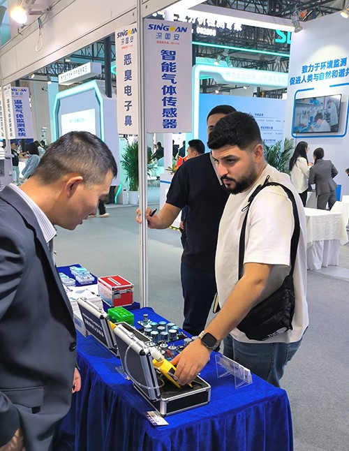 展會現(xiàn)場,還有很多國外客戶被深國安展示的先進環(huán)境監(jiān)測技術(shù)與智能安防解決方案深深吸引,他們認真聆聽工作人員的詳細介紹;或親自上手操作多款新品氣體檢測儀器,體驗其精準高效的檢測性能。
