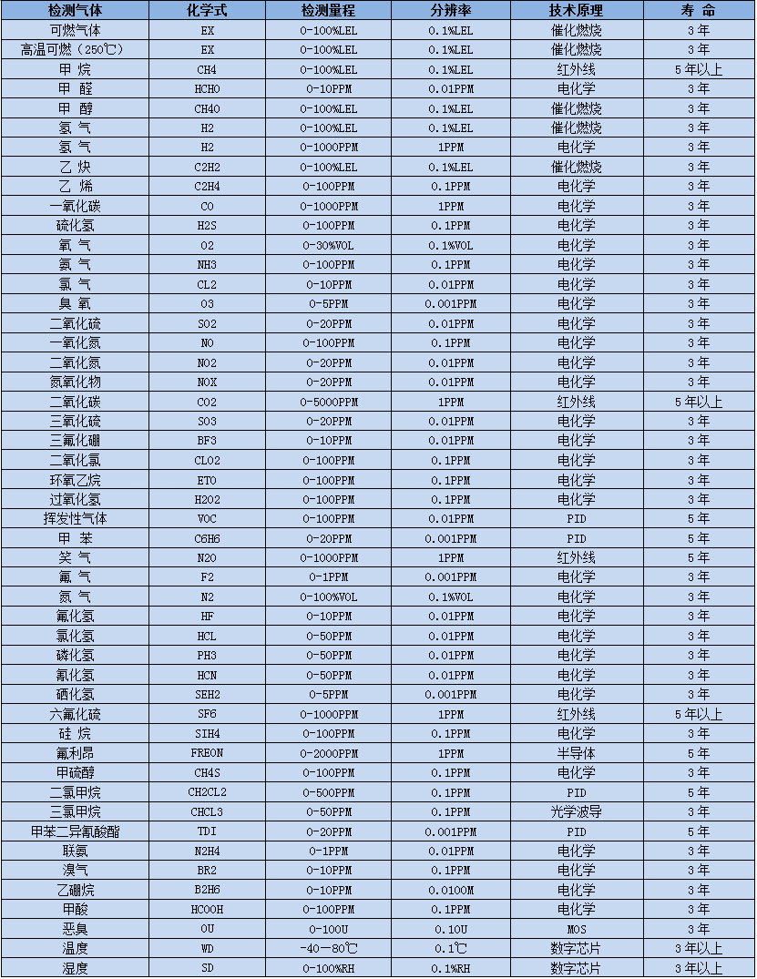 ※另有1000種氣體和量程可選,詳細請咨詢深國安銷售人員!